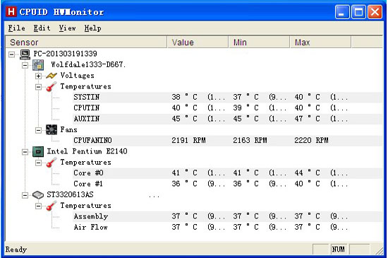 HWMonitor是一款CPUID的新軟件,它不僅具有CPU-Z的硬件檢測功能,它還具有實時監測的功能,通過傳感器可以實時監測CPU的電壓、溫度、風扇轉速,內存電壓,主板南北橋溫度、硬盤溫度,顯卡溫度等。